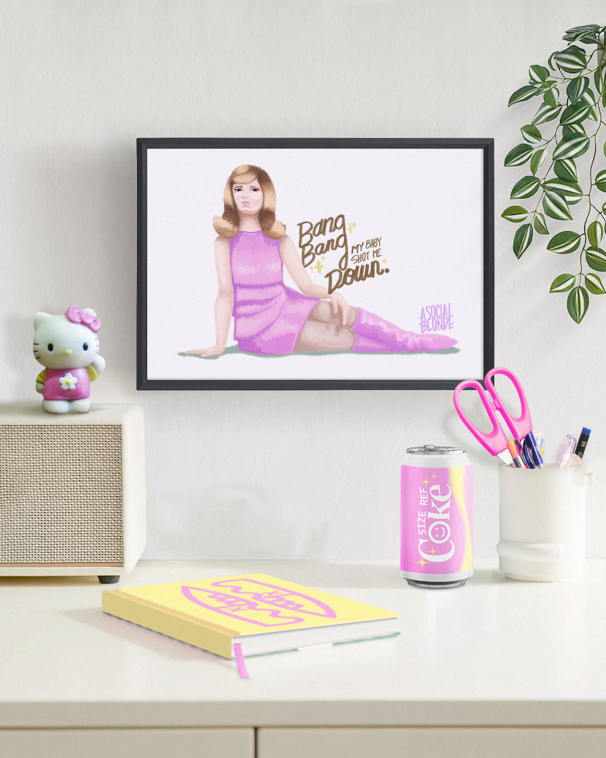 Bang Bang: Ride into nostalgia with this cool print inspired by Nancy Sinatra's iconic anthem. Elevate your vibe with our locally printed art, proudly crafted in Ontario. Plus, frame options available to make your piece truly pop and ready to hang!